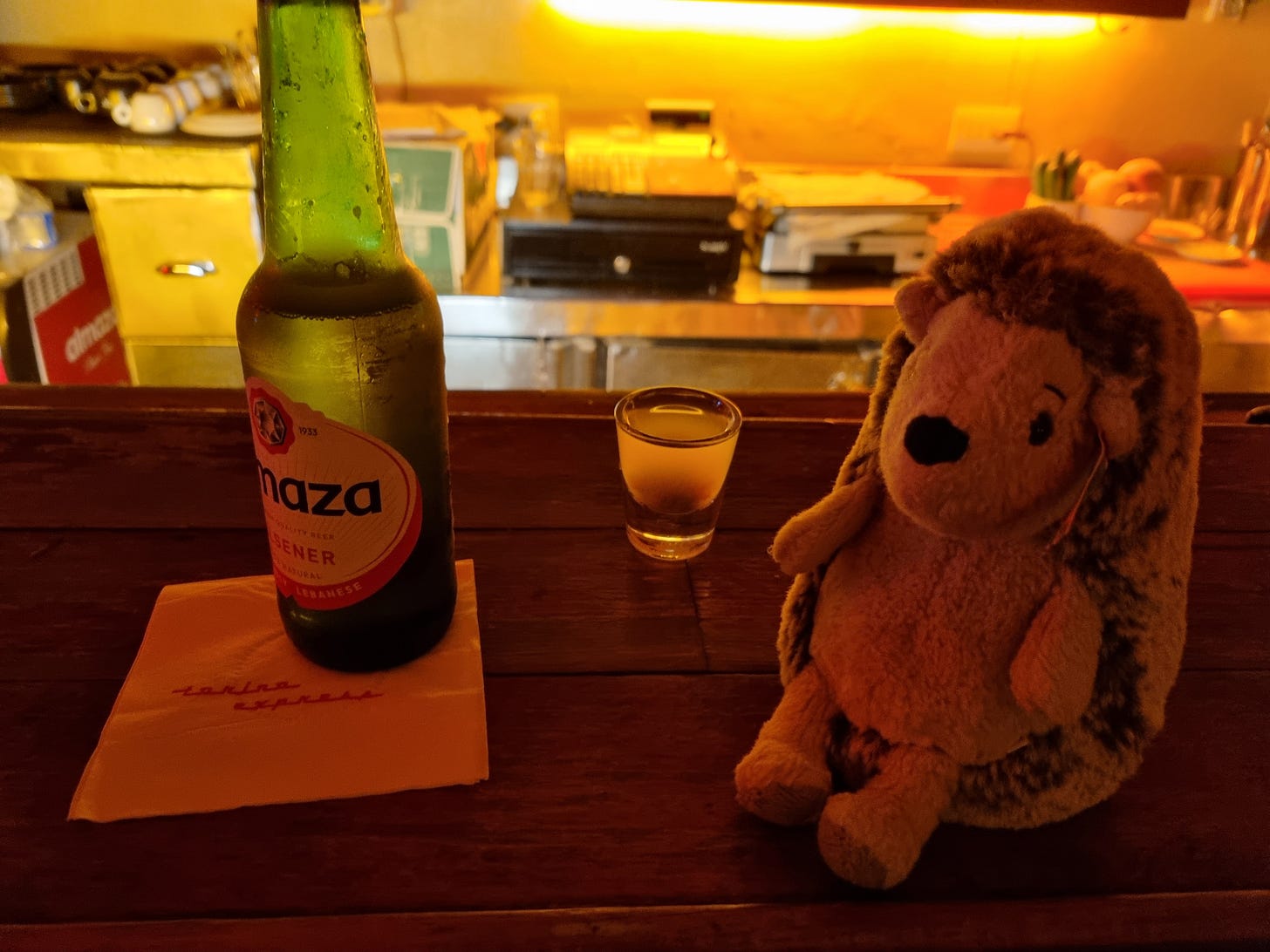 On retrouve ses marques, Le Torino Express pas exemple. Pas changé, pas bougé. La Almaza et le Doodoo shot non plus. C’est un shot de vodka et citrons avec 2 gouttes de tabasco et une olive dans le fond du verre. Apparemment ça a touché aussi les bars en Syrie sans jamais se démoder ici. Le Démo existe toujours aussi, et la grosse porte en fer du mythique club Yukunkun, pourvoyeur des meilleurs soirées Beyrouthines dans les années 2010.