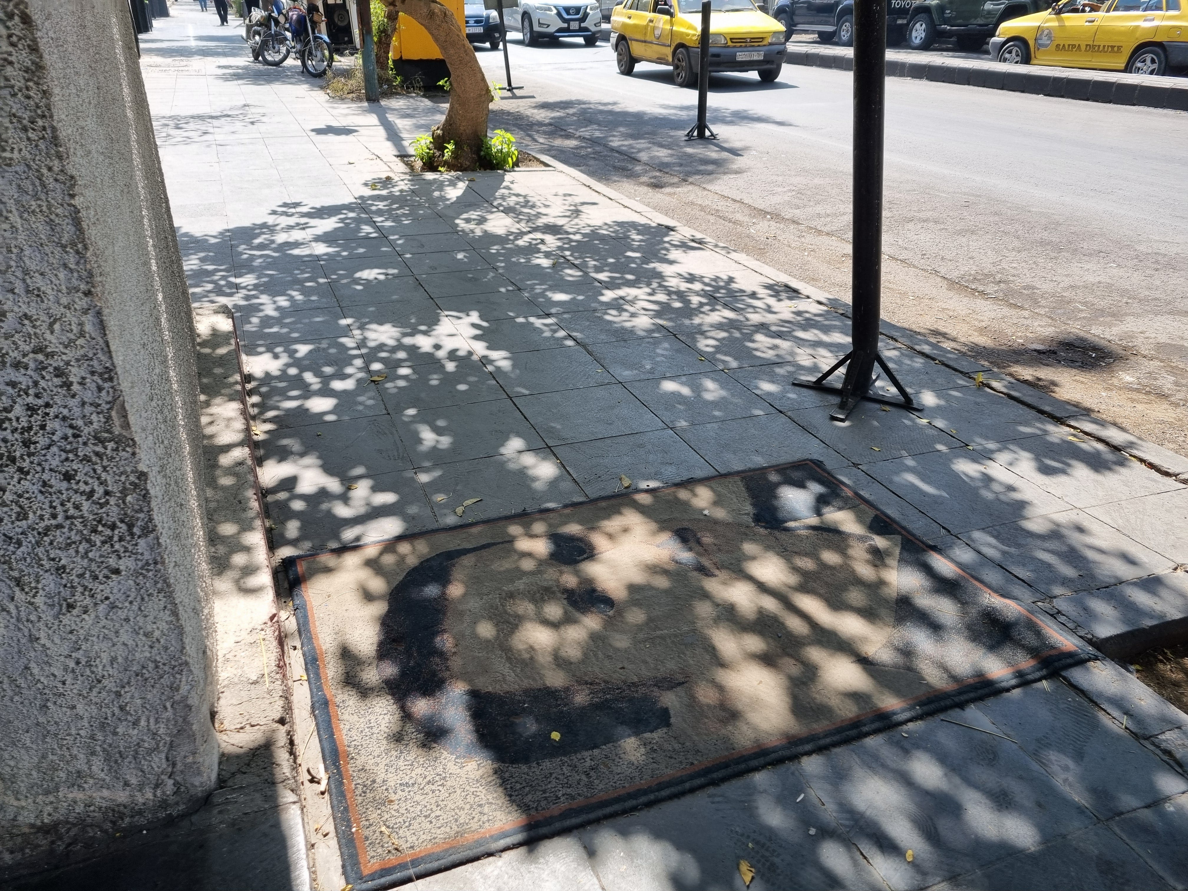Ce qui frappe d’abord c’est l’absence totale et radicale de tout portrait officiel. Même au Liban, où ils ont été obligés de se calmer sur les portraits de Nasrallah, remplacés par des affiches de propagande à la gloire de l’armée libanaise qui est chargée du désarmement, il en reste quelques-uns. Ici rien, pas une tête couronnée. En fait la plupart des panneaux qui servaient habituellement à la propagande ou à la publicité sont vide. Plus de dictateur, plus de pubs. Dans le Moyen-Orient je pense que c’est unique.