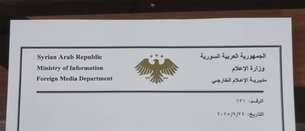 Le ministère de l’information est très accueillant. « Ahlan wa Sahlan » par au moins 4 personnes souriantes à l’accueil alors qu’on entre pour aller au 6ème étage chercher mon papier de journaliste officiel. La demande de visa se fait par internet. On doit envoyer ses informations, une « media request », ce qu’on veut couvrir, combien de temps on veut rester et par quelle frontière on arrive. On reçoit ensuite un mail de confirmation indiquant que la demande a été acceptée et qu’il faut aller chercher un papier au ministère de l’information dès son arrivée. C’est ce papier là que nous allons chercher.